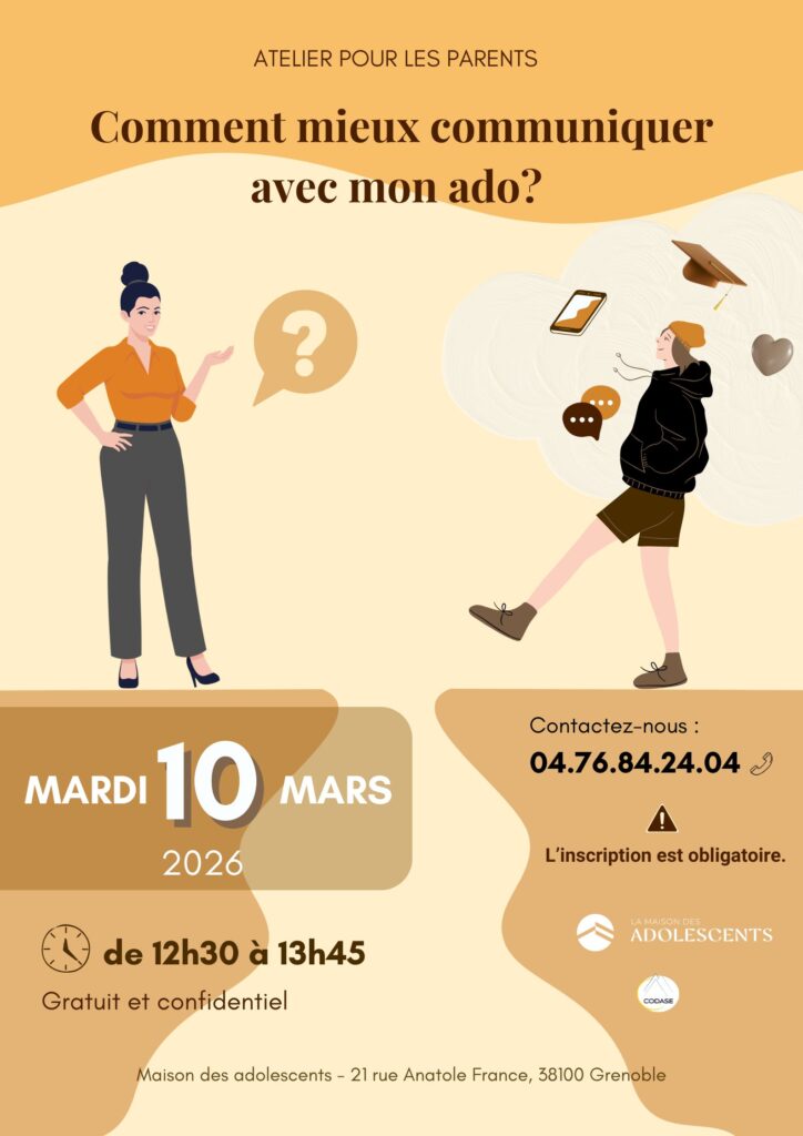 La Maison des Adolescents, située au 21 rue Anatole France à Grenoble, a le plaisir de proposer son nouvel atelier parents :