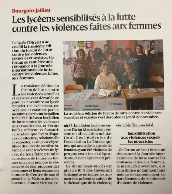 Accueil Secteur MDA Bassin Nord Isère Filtre actualités MDA nord isère Adolescents Ateliers Informations Parents Professionnels Stand au lycée l’oiselet pour une sensibilisation à la lutte contre les violences faites aux femmes Ouverture Maison des Adolescents de Bourgoin-Jallieu charger plus d'actualités